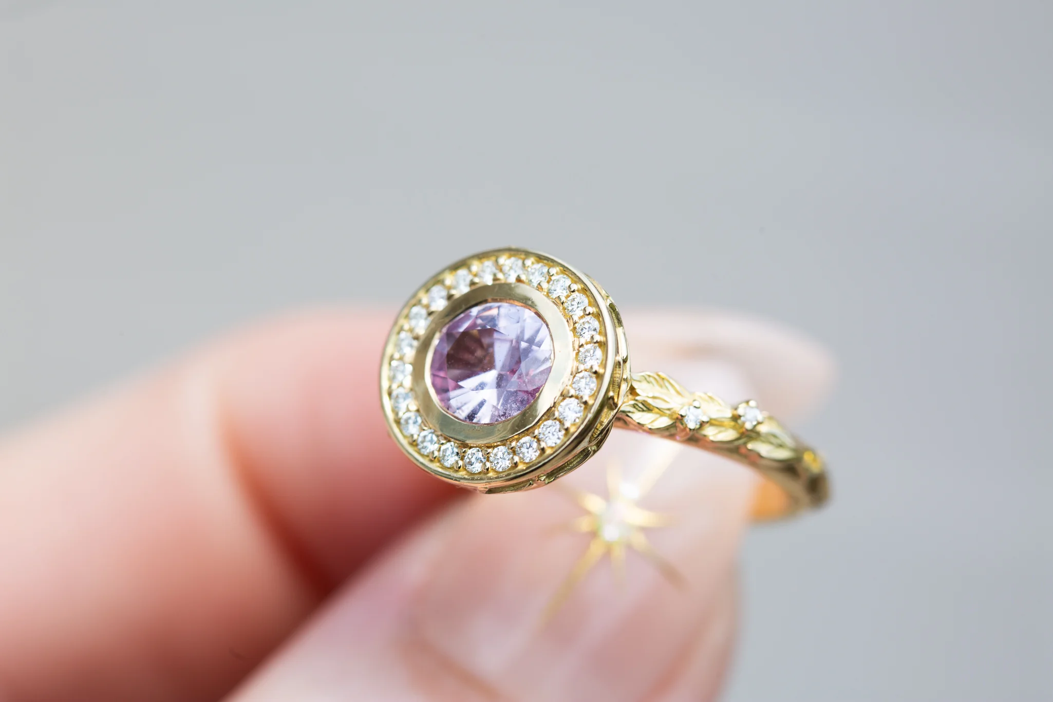 - 1.42ct 7.3x6.3mm oval natural lighter pink sapphire center (unheated, Madagascar, some inclusions)