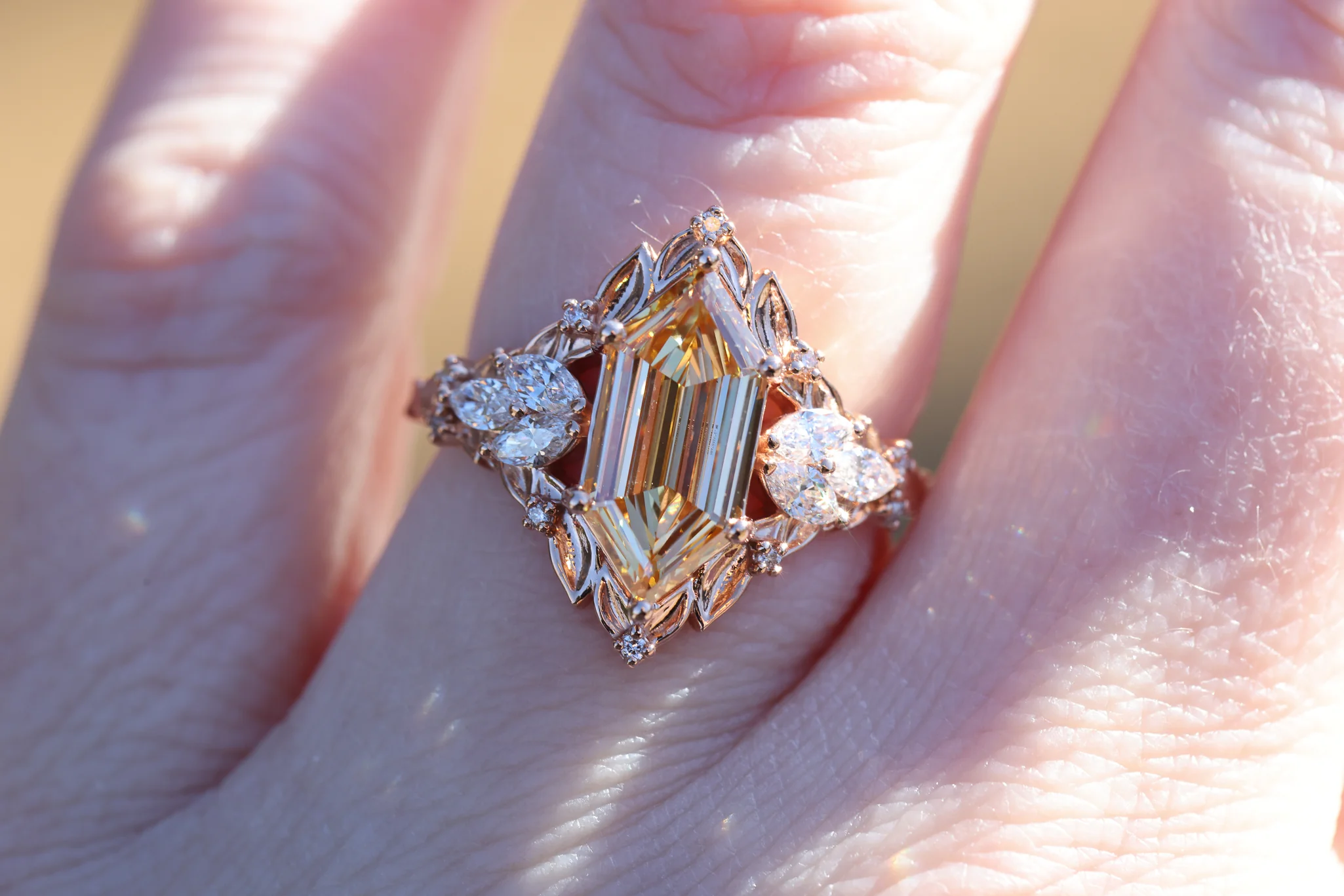 - Side/Accents: 4x2mm marquise lab diamond, 1mm lab diamond