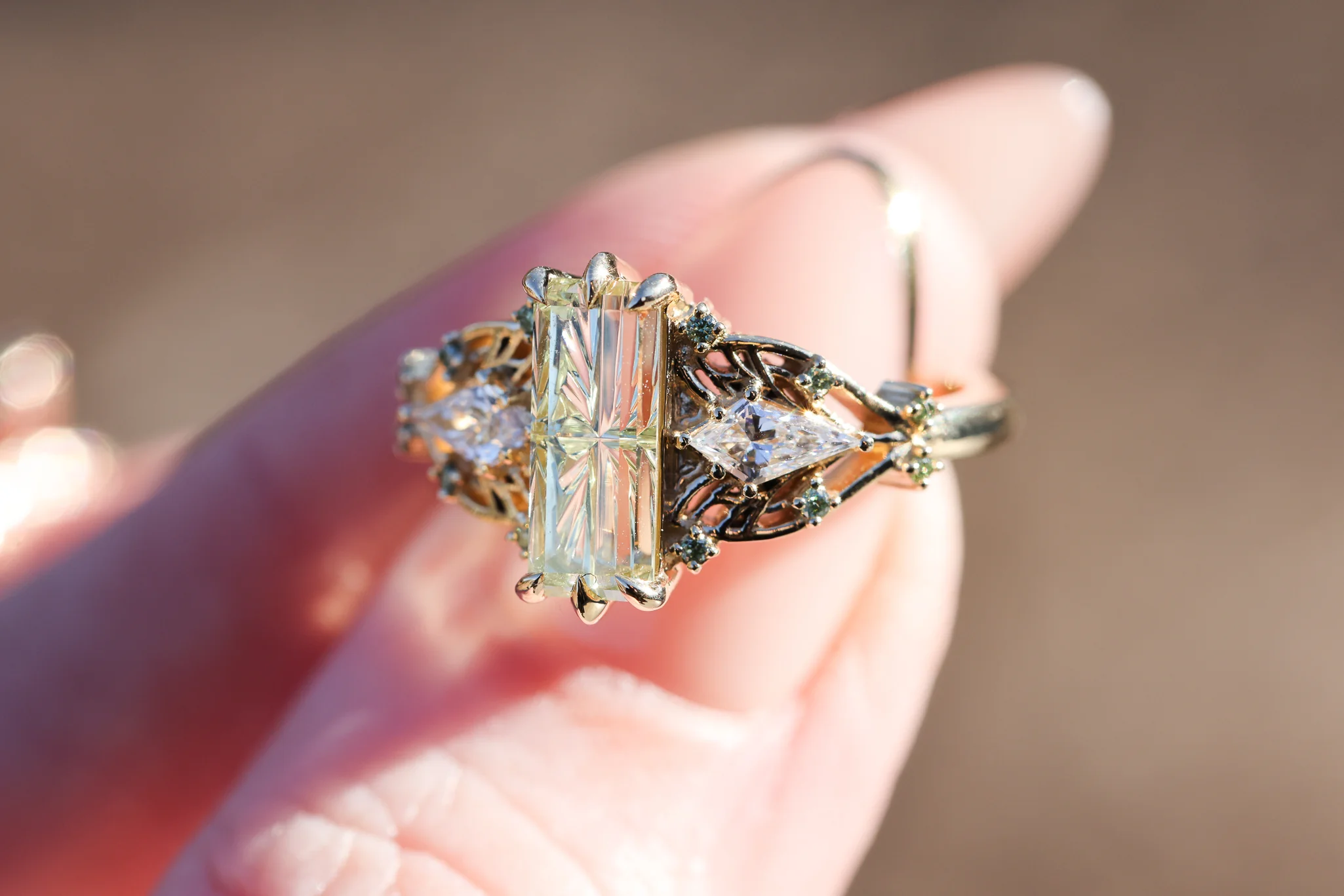 - Side/Accents: 6x3mm kite cut lab diamond, 1mm mint diamonds