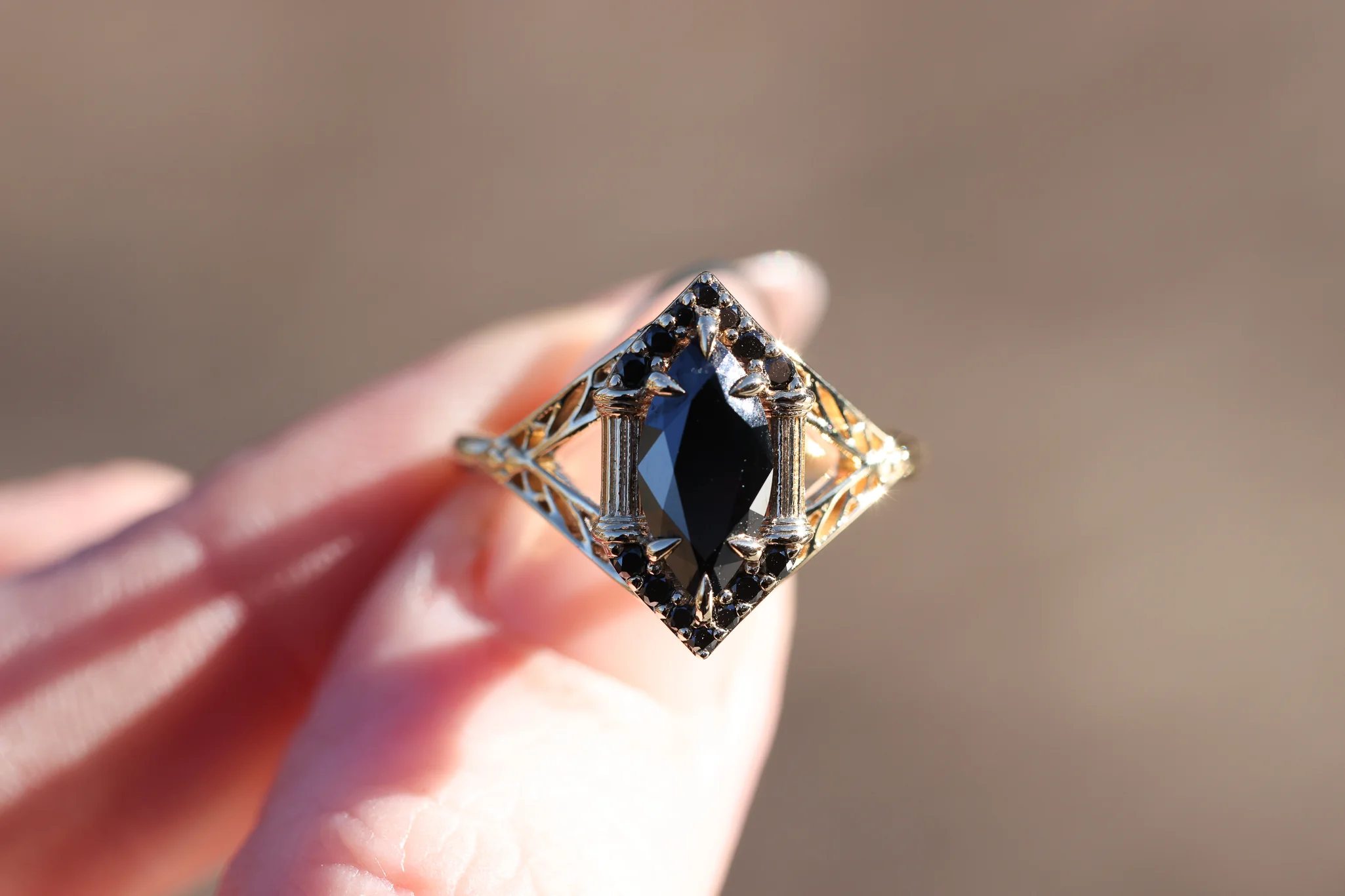 - Center: 1.38ct 11.74x5.76mm black lab diamond IGI 726540272
